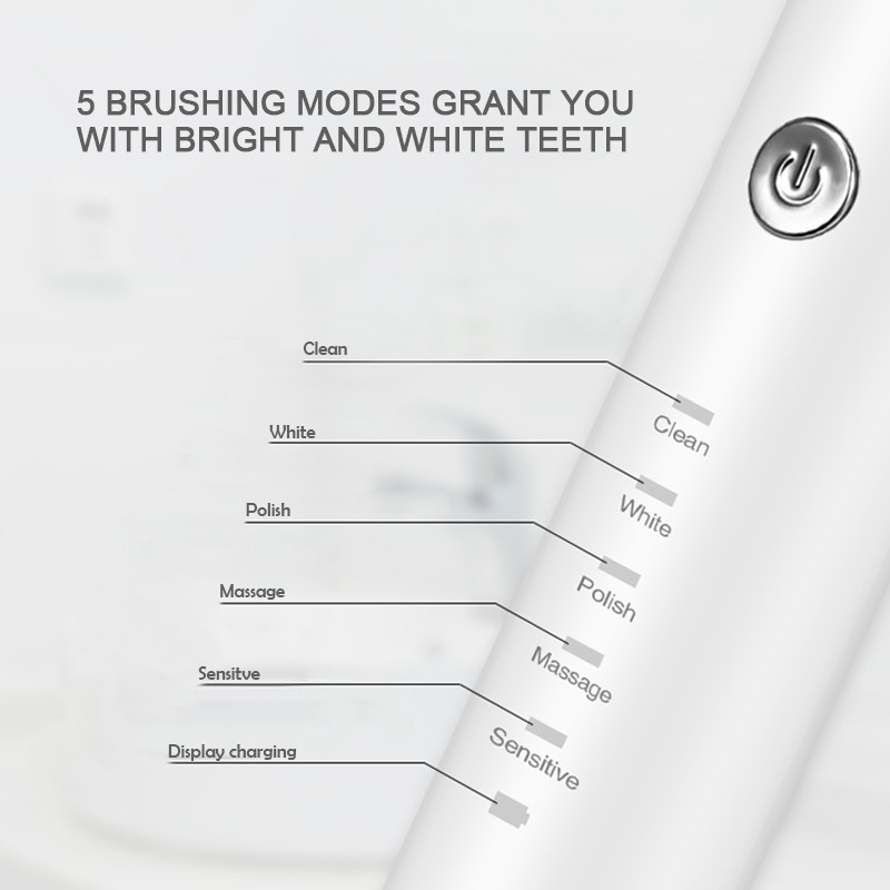 OEM IPX7 waterdicht 5 werkwijzen Smart oplaadbaar Automatische tandenborstel sonic