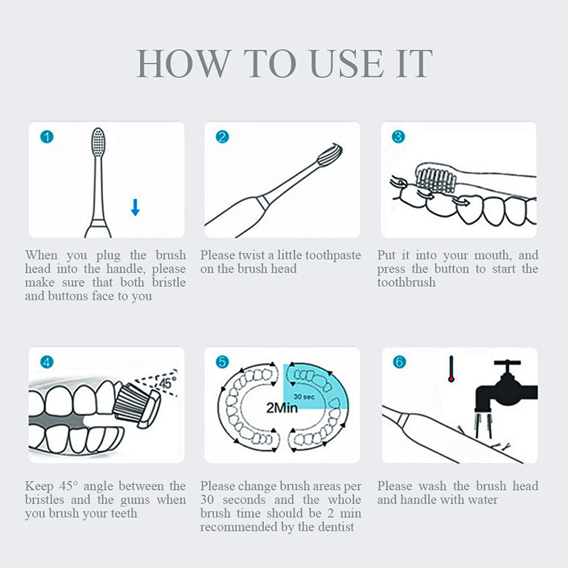 | Productnaam | Ultrasone Elektrische Tandenborstel | Materiaal | ABS+TPE+POM+Dupont-borstel |